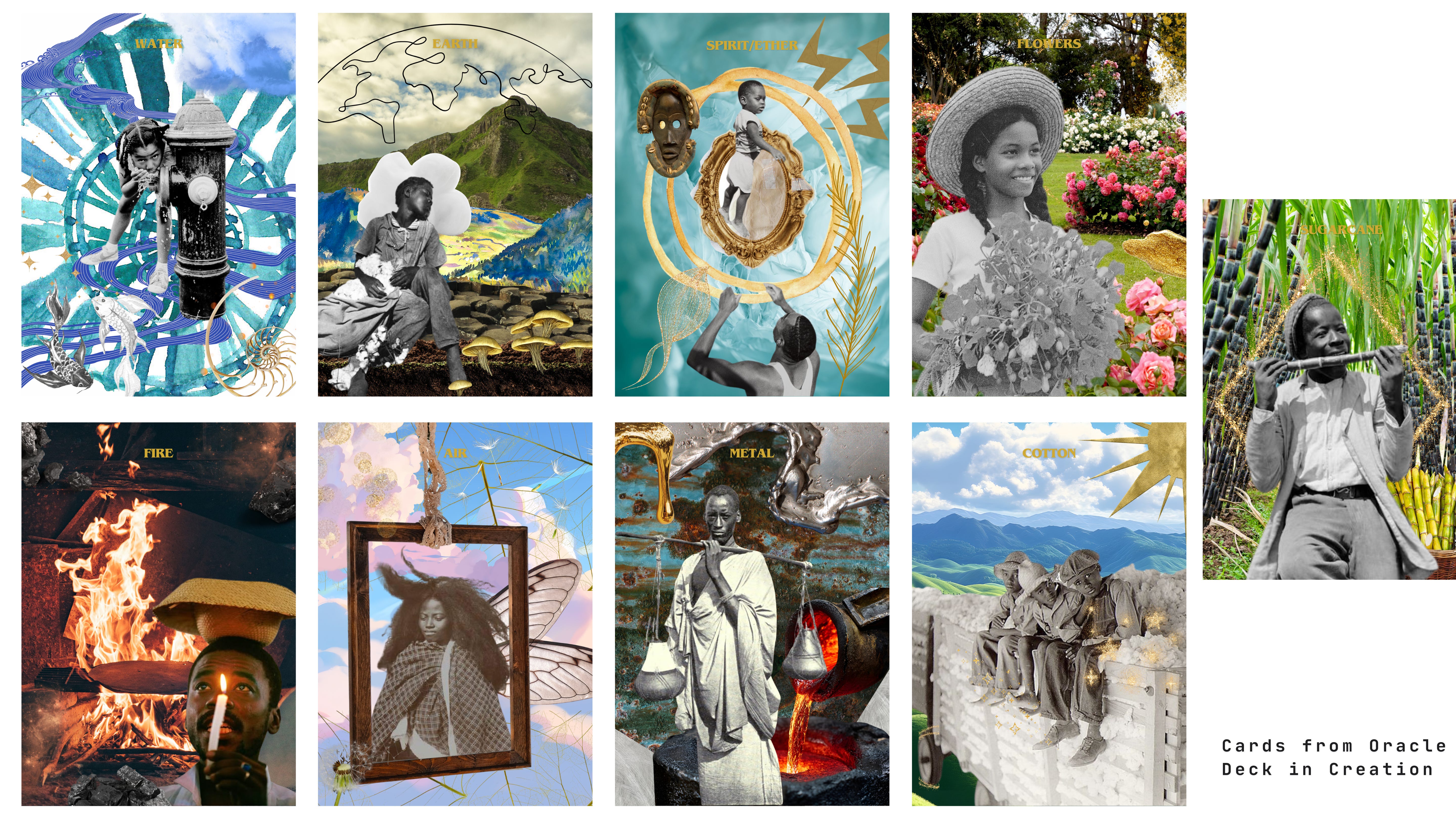 I work with five to seven decks (sometimes more), listening for what wants to speak. I always begin with the two decks I authored: Black Tarot: Ancestral Awakening and Elemental Alchemist (co-authored with my second youngest sister). From there, I follow the call of the work, pulling from my larger collection.