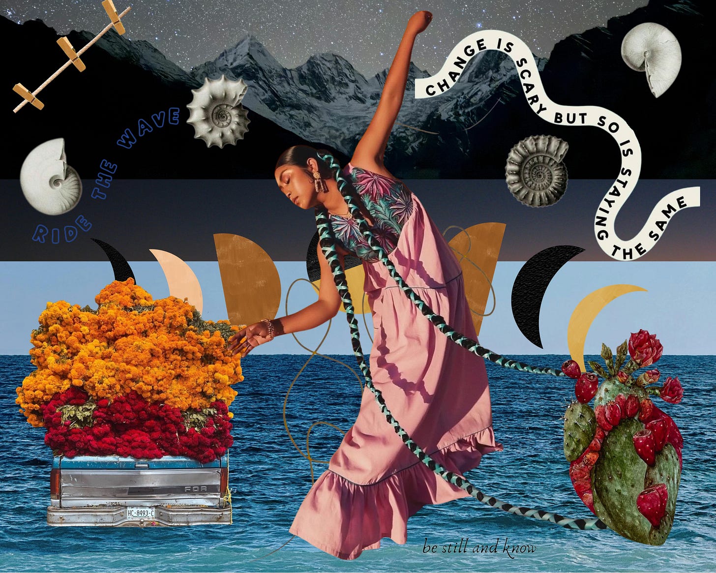 From there, the collage emerges, Ancestrally. It moves through me, filtered through my own lenses as a Reflector, an Aquarius, a friend, a witness, and a co-rememberer.